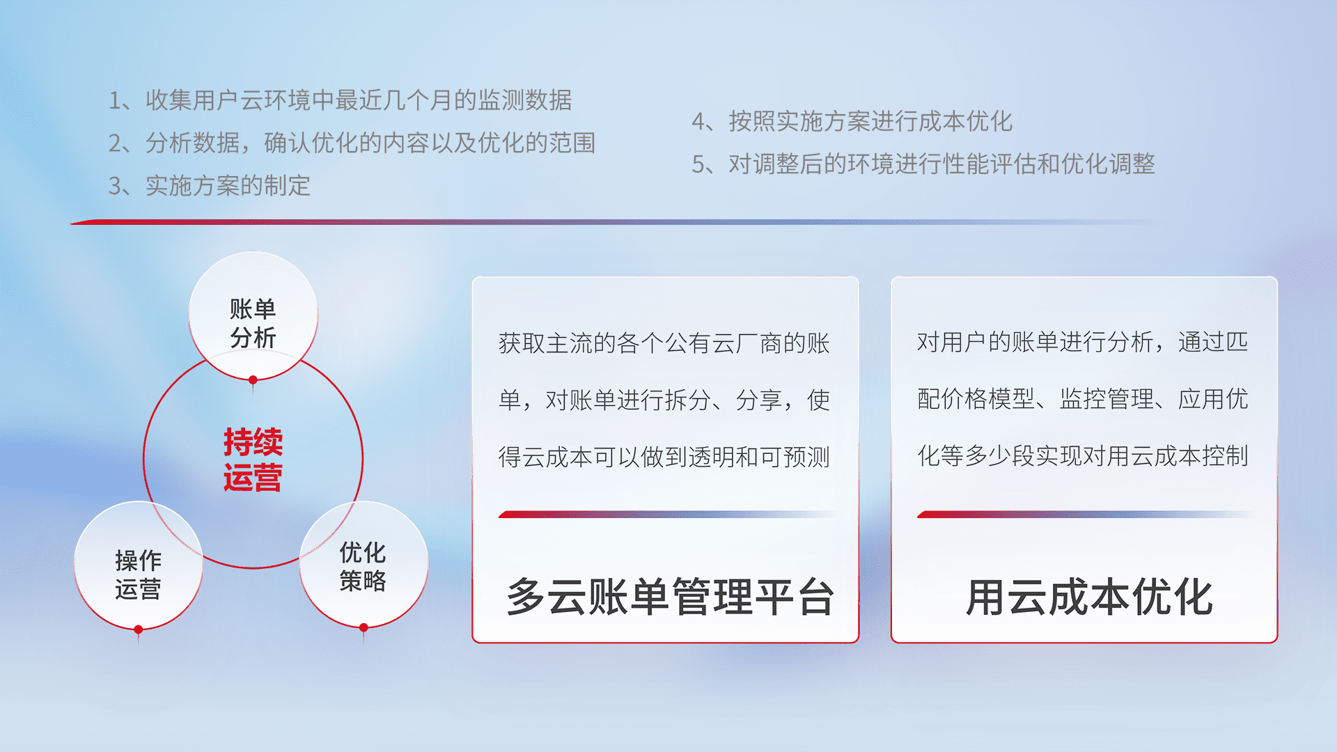运用智能化工具分析云资源,,,,提供日常费用可视化工具,,,,自动账单拆分,,,成本优化云上费用,,,,降本增效。。